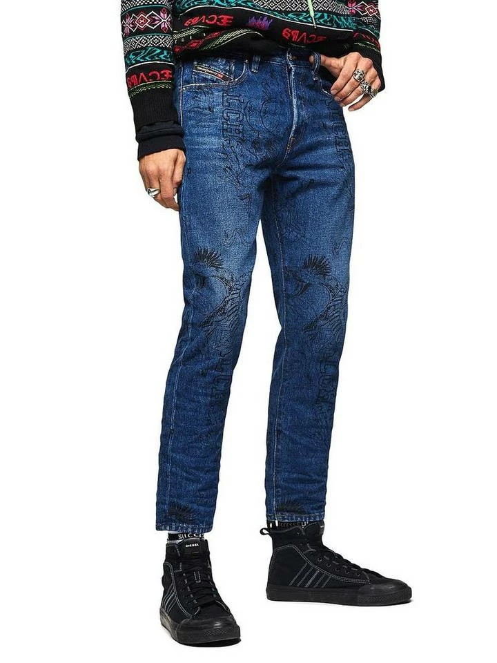 Eine schmal geschnittene Jeans mit eher tieferem Schritt. Die Silhouette in klassischer Five-Pocket-Konstruktion wird durch eine leichte Cropped-Beinpartie abgerundet.
