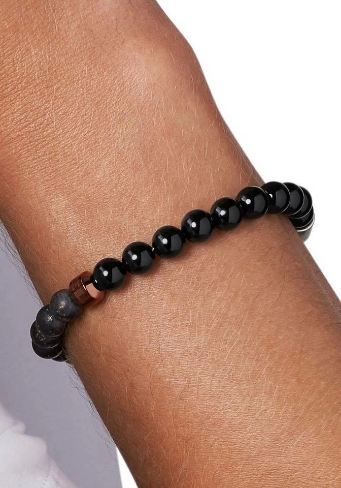 Ein faszinierender Anblick – dieses Herrenarmband ist genau das Richtige für modeinteressierte Männer! Bestückt mit Achat- und Karbonperlen ist der Armschmuck mit praktischem Karabinerverschluss ein faszinierendes Detail in lässigen Outfitkombinationen. Ein echtes Must-have, für Männer die Schmuck lieben!