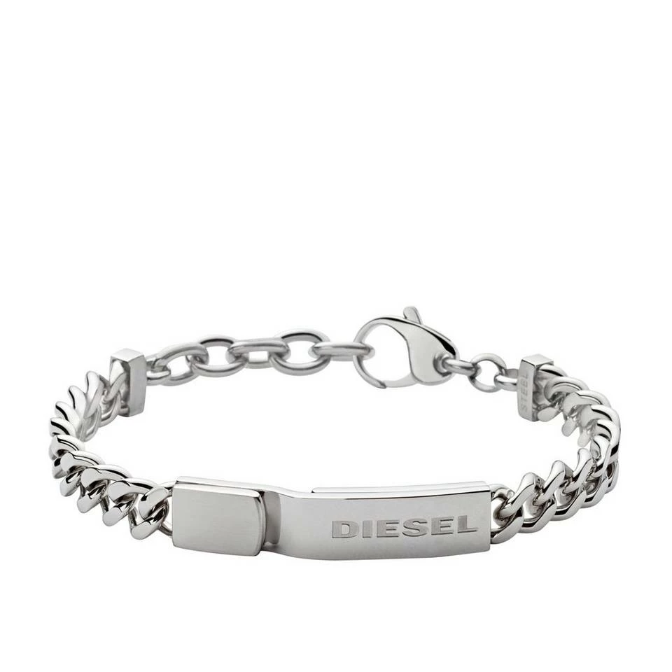 Massives Herrenarmband aus Edelstahl mit Diesel Logo, längenverstellbar von 18-19,5 cm.