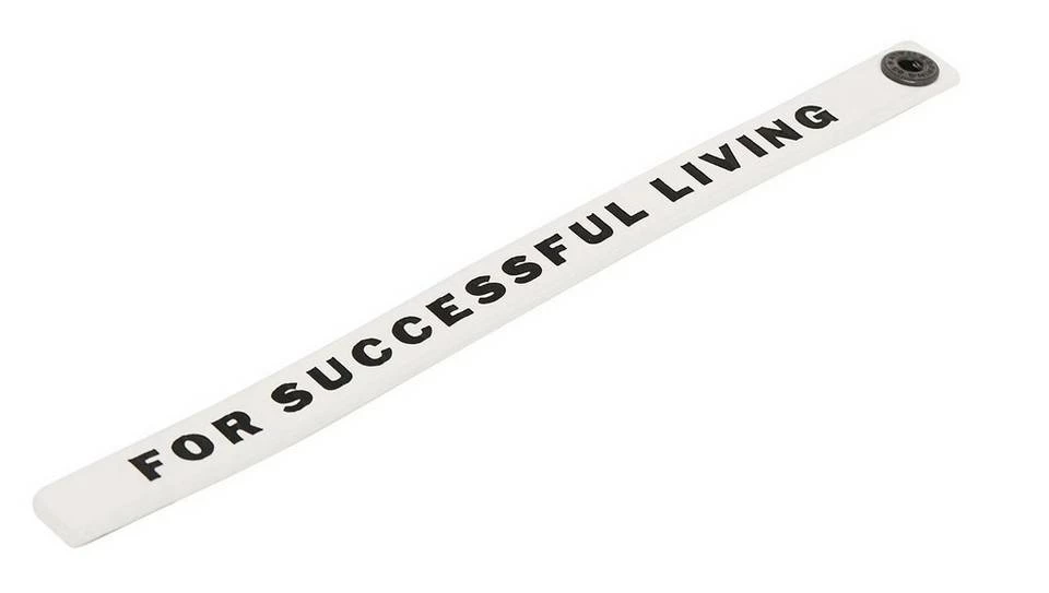 Ein dünnes Armband aus Leder mit „Successful“-Slogan.