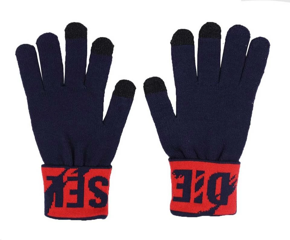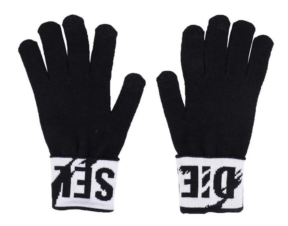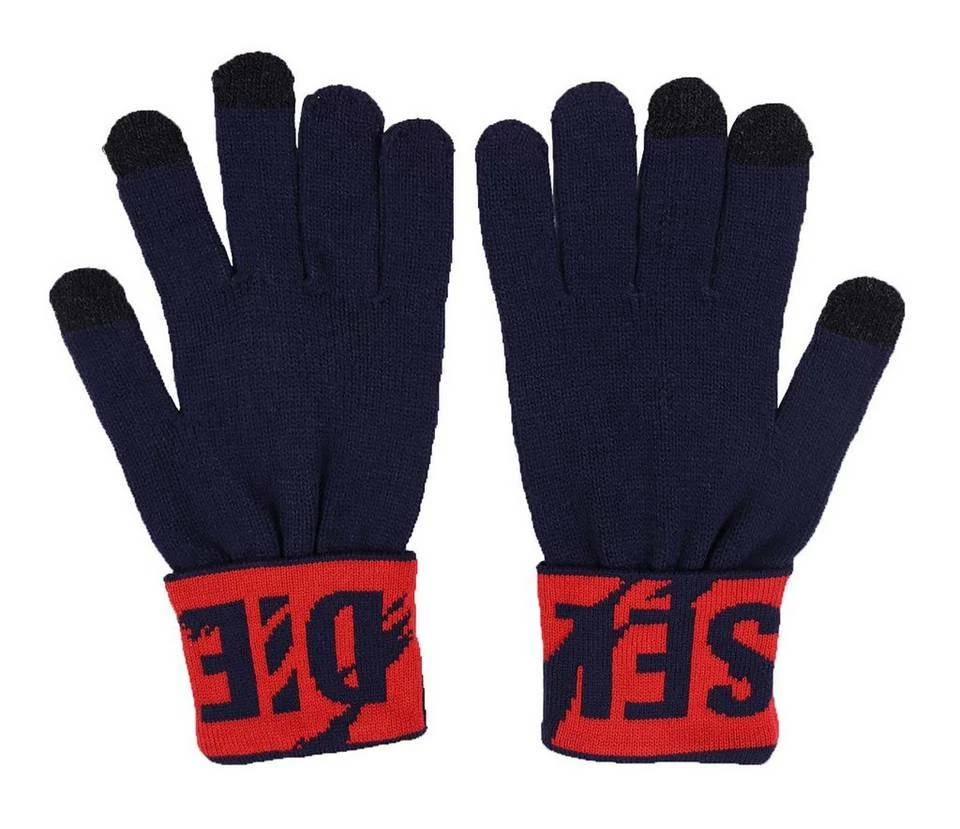 Bei diesen wohligen Acrylhandschuhen mit Diesel-Logo am Umschlag bleiben die Finger auch beim Tippen auf dem Smartphone schön warm.