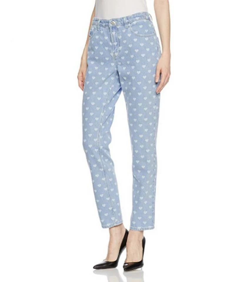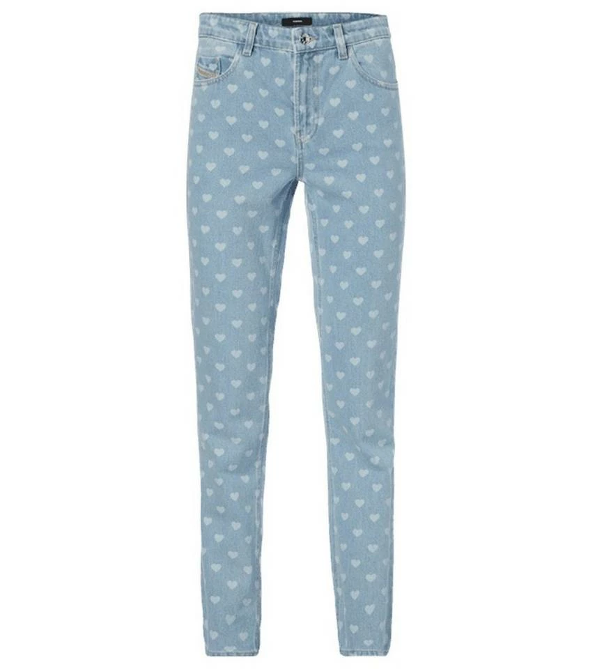 DIESEL Hose gerade geschnittene Damen Jeans mit Herzchen-Print Hellblau