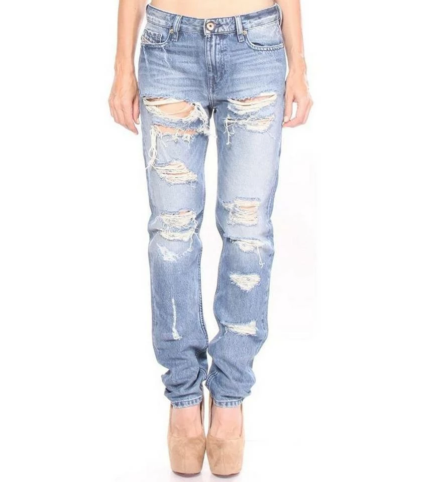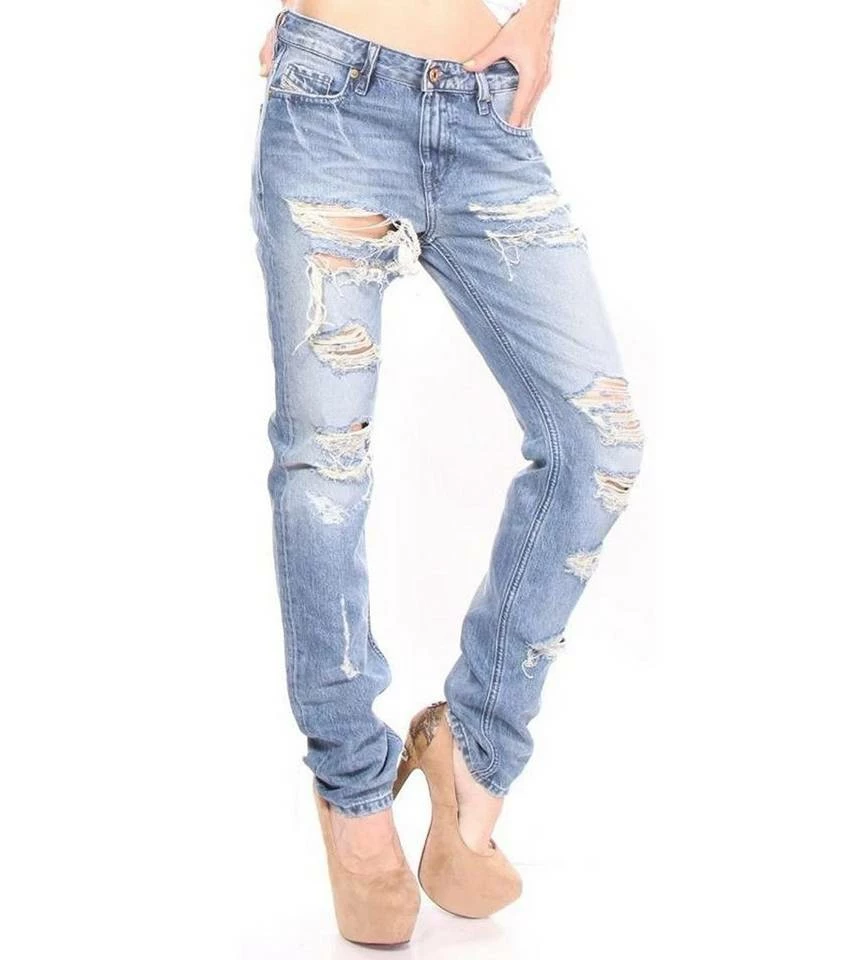 Diesel Slim-Straight Jeans bequeme Denim-Hose für Frauen im Destroyed-Look Blau