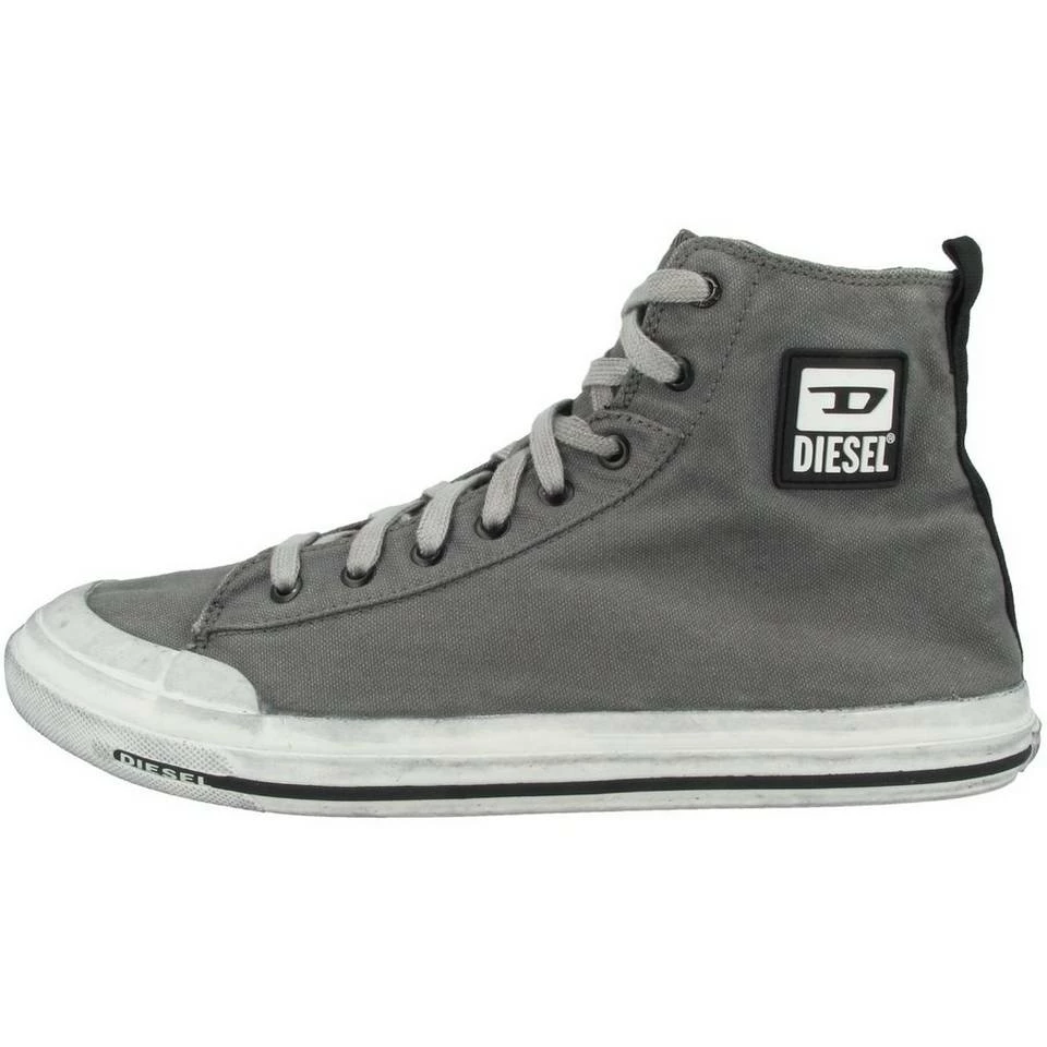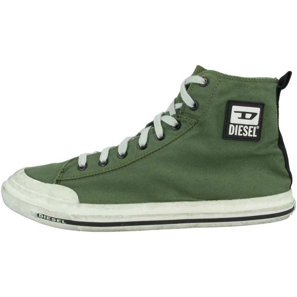 Das hochwertige Obermaterial aus Textil verspricht höchsten Tragekomfort. Für das besondere Highlight des Schuhs sorgt der kontrastfarbige Streifen mit Schlaufe an der Ferse. Die gummierte Laufsohle und die verstärkte Zehenkappe machen den Schuh robust und widerstandsfähig. Ein Sneaker mit einer bequemen Innensohle, Luftlöchern für Atmungsaktivität und einem hohen Schaft für einen stabilen Halt. Zudem runden ein robuster Zierstreifen an der Außensohle und das 3D Diesel Logo das Design ab.