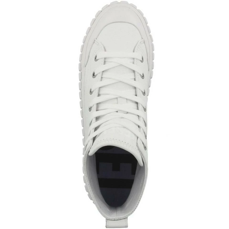 Das hochwertige Obermaterial aus Glattleder verspricht höchsten Tragekomfort. Für das besondere Highlight des Schuhs sorgt die markante Plateausohle und die Schlaufe an der Ferse. Die gummierte Laufsohle und die verstärkte Zehenkappe machen den Schuh robust und widerstandsfähig. Ein Sneaker mit einer bequemen Innensohle. Zudem rundet das 3D Diesel Logo das Design ab.
