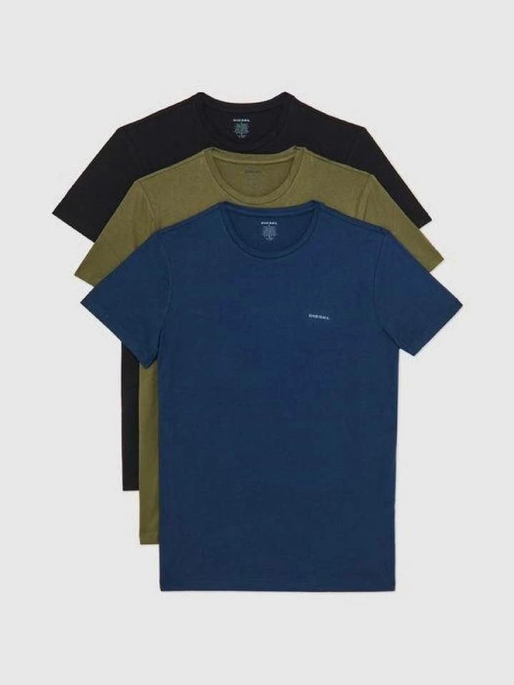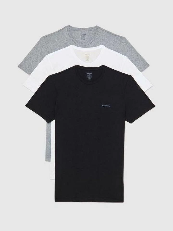 Einfarbiges T-Shirt der Marke DIESEL in der 3er Set Sparpackung. Ideal als Ergänzung Ihres Business- und Freizeitlooks. Die weiche, atmungsaktive Baumwolle und eine komfortable Passform machen diesen Basic-Artikel für den Alltag unentbehrlich. Dieses Shirt mit klassischem Rundhals-Ausschnitt und abgesetzten Rippblenden am Ausschnitt lässt sich wunderbar unter Hemden für den Büroalltag und in der Freizeit tragen.