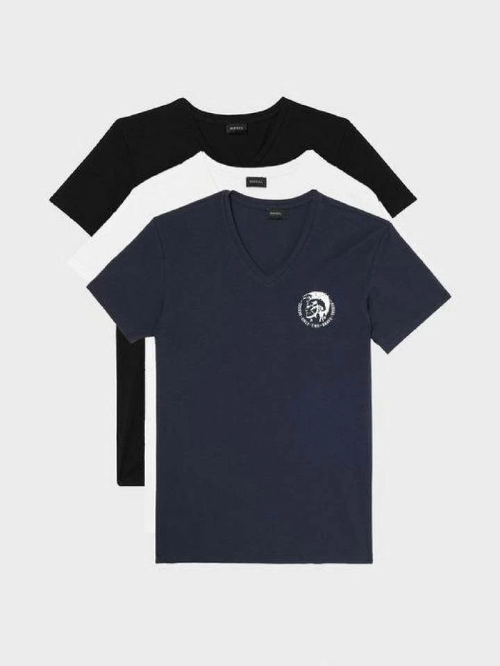 Einfarbiges T-Shirt der Marke DIESEL in der 3er Set Sparpackung. Ideal als Ergänzung Ihres Business- und Freizeitlooks. Die weiche, atmungsaktive Baumwolle und eine komfortable Passform machen diesen Basic-Artikel für den Alltag unentbehrlich. Dieses Shirt mit klassischem V-Ausschnitt und abgesetzten Rippblenden am Ausschnitt lässt sich wunderbar unter Hemden für den Büroalltag und in der Freizeit tragen.