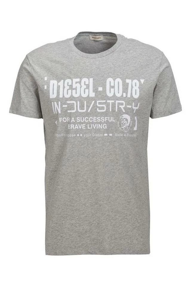 Das Basic Diesel T-Shirt für Herren aus reiner Baumwolle ist schmal geschnitten und verziert mit einem gummierten Print auf der Brust.