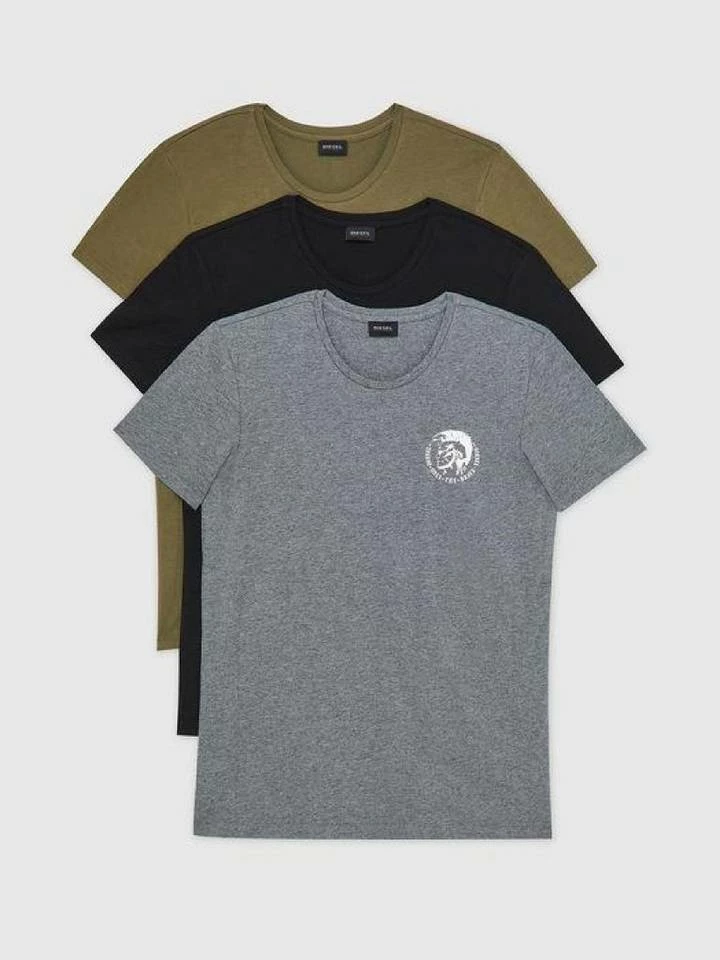 Einfarbiges T-Shirt der Marke DIESEL in der 3er Set Sparpackung. Ideal als Ergänzung Ihres Business- und Freizeitlooks. Die weiche, atmungsaktive Baumwolle und eine komfortable Passform machen diesen Basic-Artikel für den Alltag unentbehrlich. Dieses Shirt mit klassischem Rundhals-Ausschnitt und abgesetzten Rippblenden am Ausschnitt lässt sich wunderbar unter Hemden für den Büroalltag und in der Freizeit tragen.