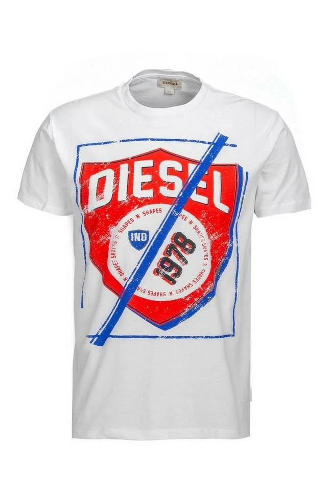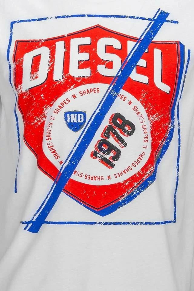 Das Basic Diesel T-Shirt für Herren aus reiner Baumwolle ist schmal geschnitten und verziert mit einem gummierten Print auf der Brust.