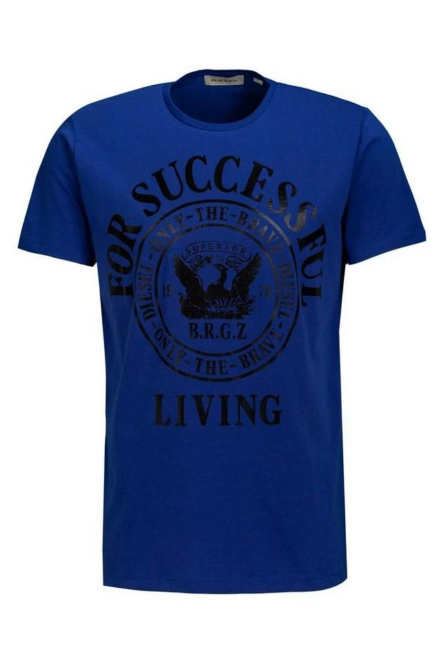 Das Basic Diesel T-Shirt für Herren aus reiner Baumwolle ist schmal geschnitten und verziert mit einem gummierten Print auf der Brust.